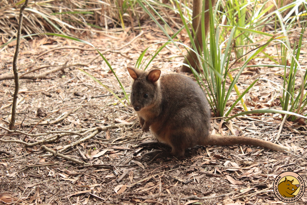 On a fait une rencontre en haut du rocher. (video en fin d’article) Une fois de plus, Chris a la fierté d’avoir été plus observateur que Lucie. On ne sait pas (encore) comment s’appelle cet animal mais Chris lui a trouvé un nom : «ragourou». Comprenez «sorte de kangourou qui ressemble à un rat» ! Il a aussi trouvé une explication au fait qu’on puisse approcher si facilement les animaux australiens : il dit que quand on part en exploration, on manque de douche alors on se fond plus facilement parmi la faune locale. Lucie et moi on lui répond «Parle pour toi !». A Stanley, par exemple, on a encore affronté l’eau glacée (ou presque !) pour être propre.